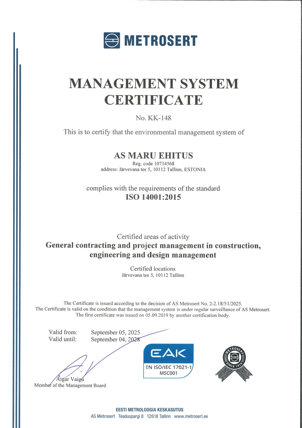 - Construction (general building; water supply and sewerage systems, indoor heating systems and heat substations, district heating systems) EH10714568-0001