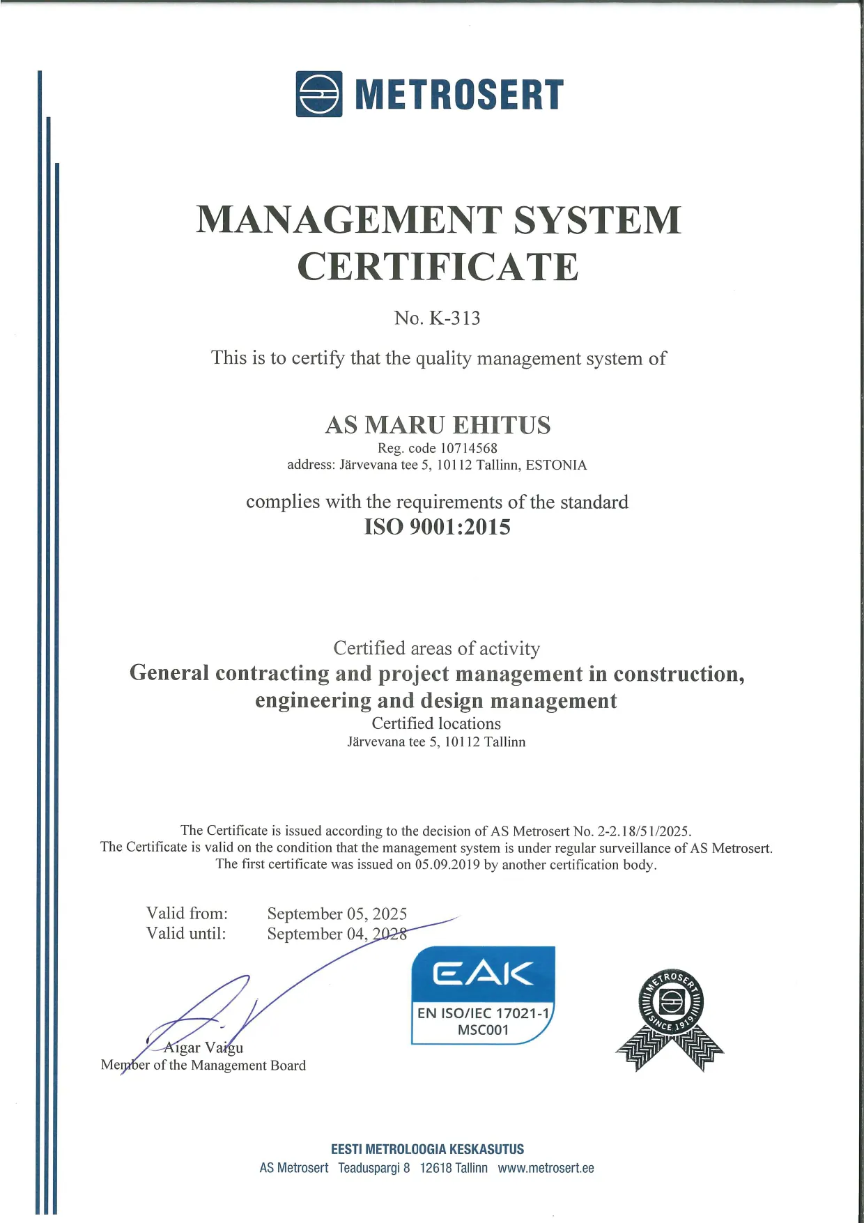 We believe that all the employees at Maru Ehitus affect the efficiency and quality of the company’s work. We believe that the regular improvement of the employee’ skills and knowledge is a precondition for providing high-quality services. We value motivated and educated workers and promote individual development.