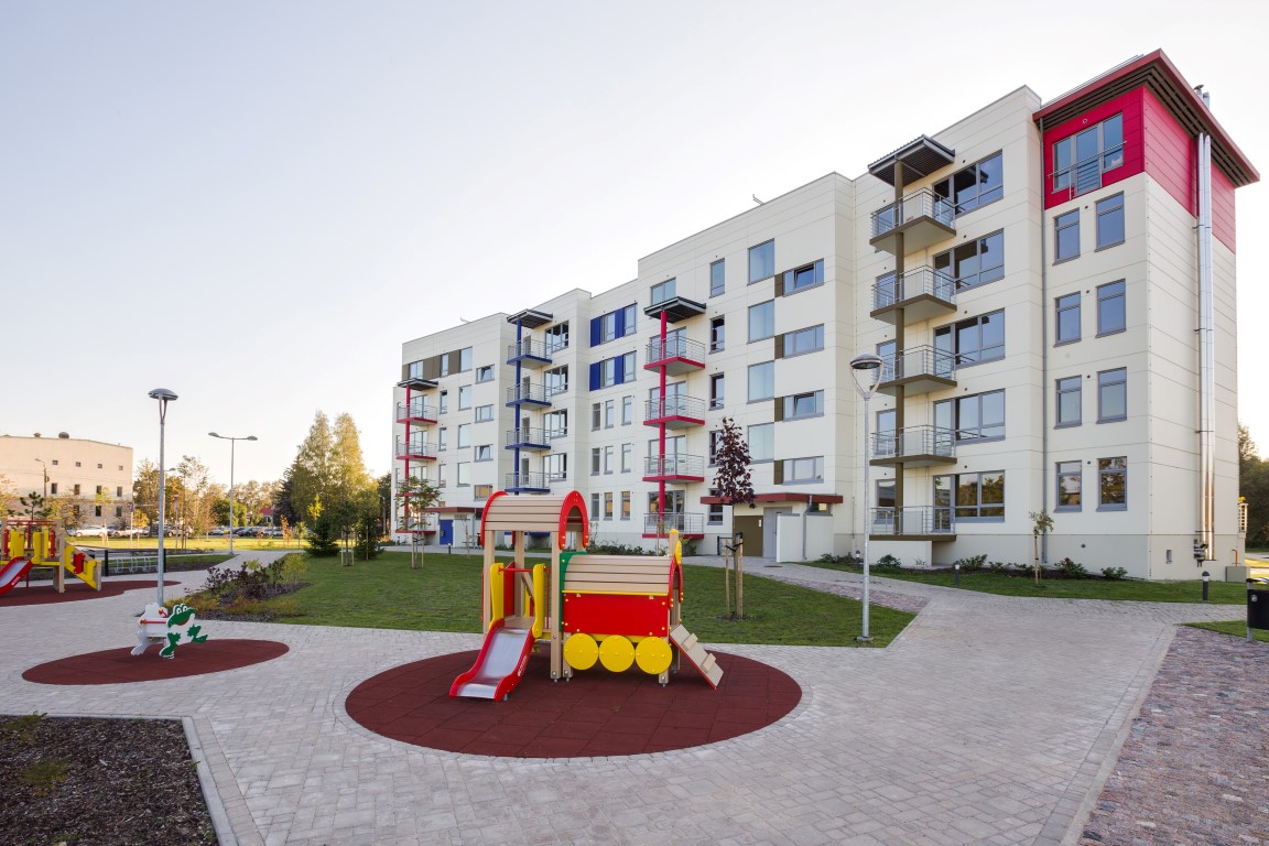 | Description: | Plot size 7 274 sqm, net area of the apartments 2 583 sqm. Apartment house has 5 storeys with two entrances and 40 apartments. Also 14 garage spaces and storage rooms for every apartment are available in the basement. |