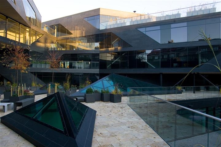 The structure is made of a steel and reinforced concrete composite that combines the good properties of both materials. Steel parts made under controlled conditions of a factory are filled with a concrete mix on the construction site. A good fire-resistant composite structure is the perfect solution for building multi-storey production and office buildings.