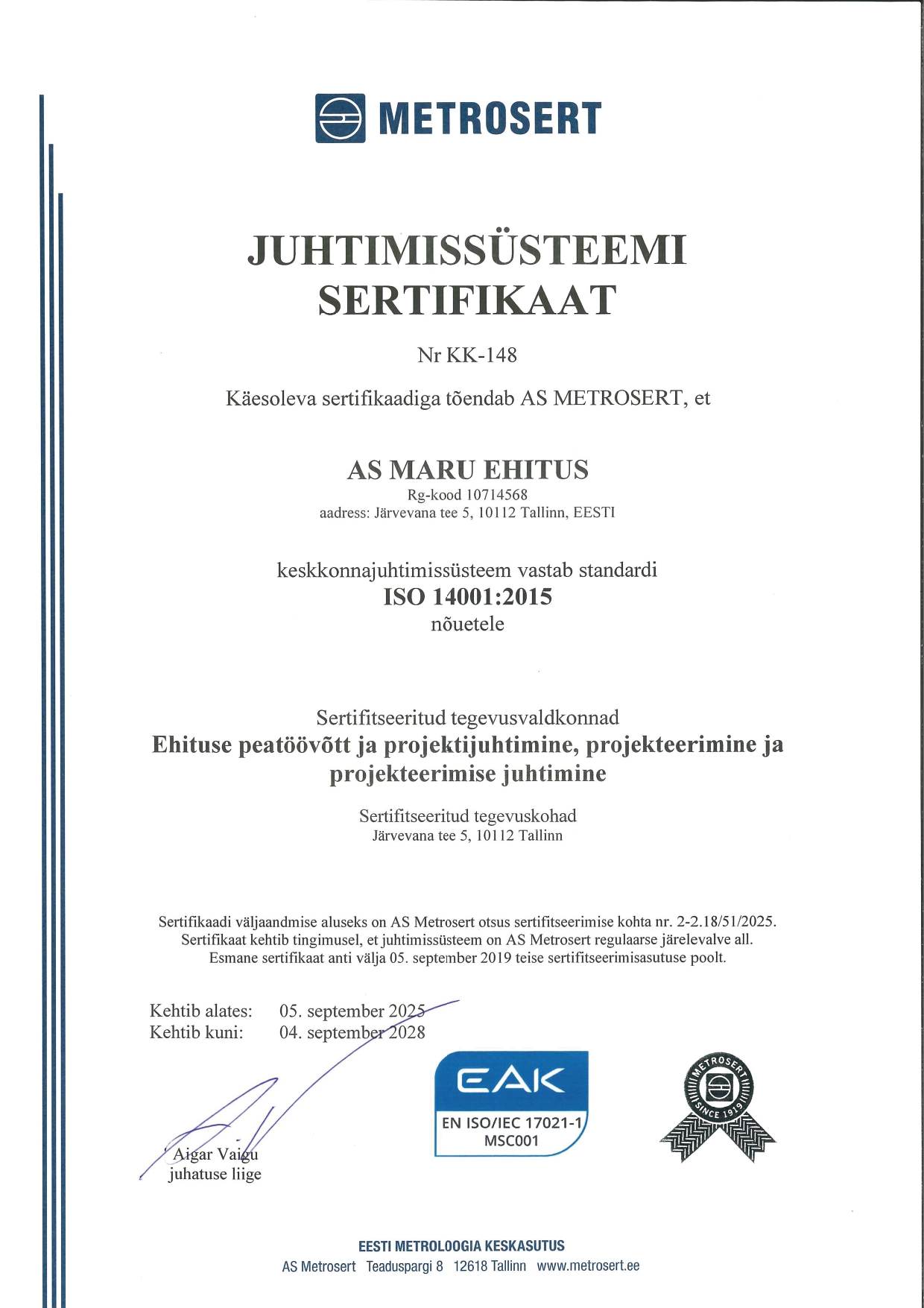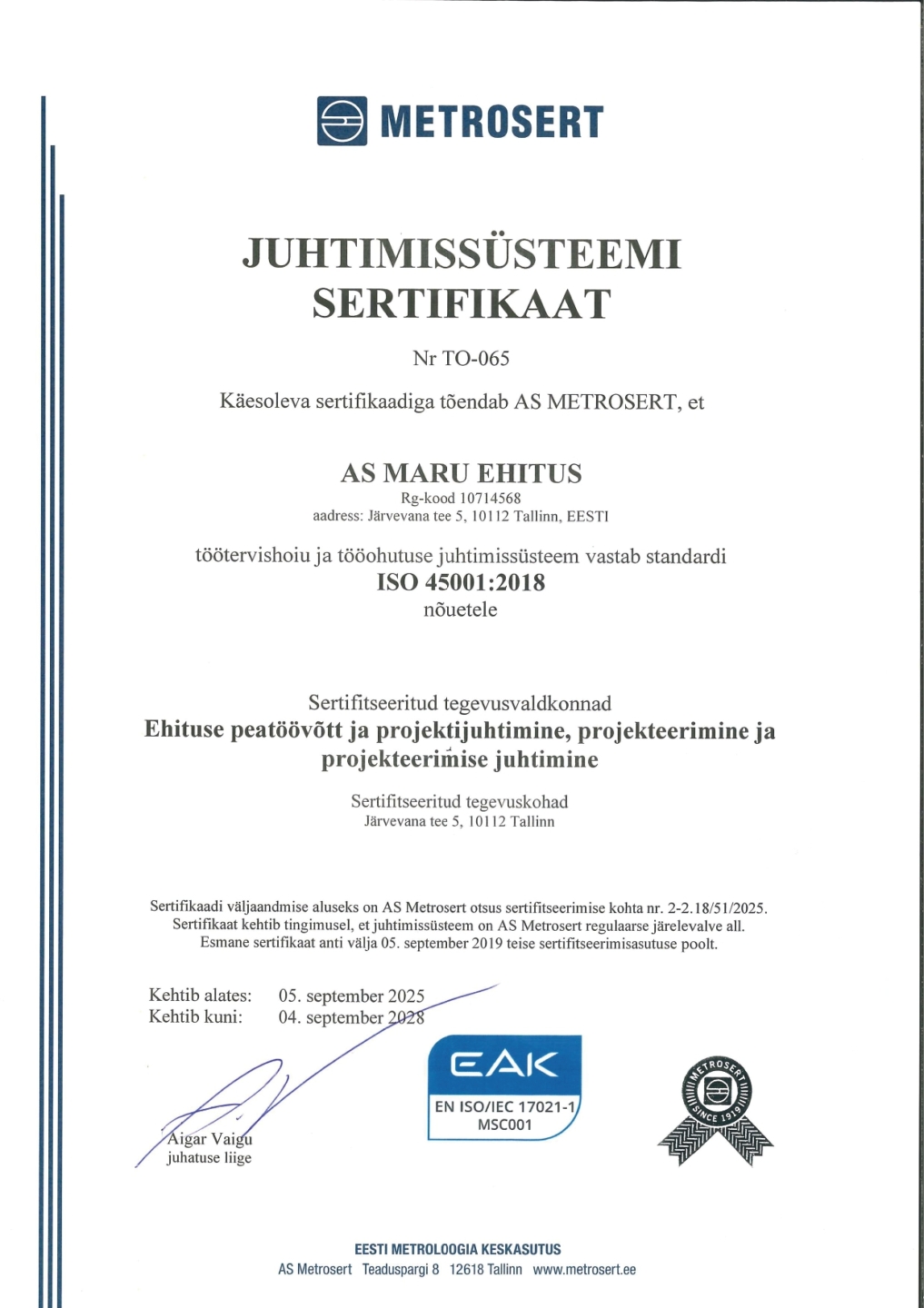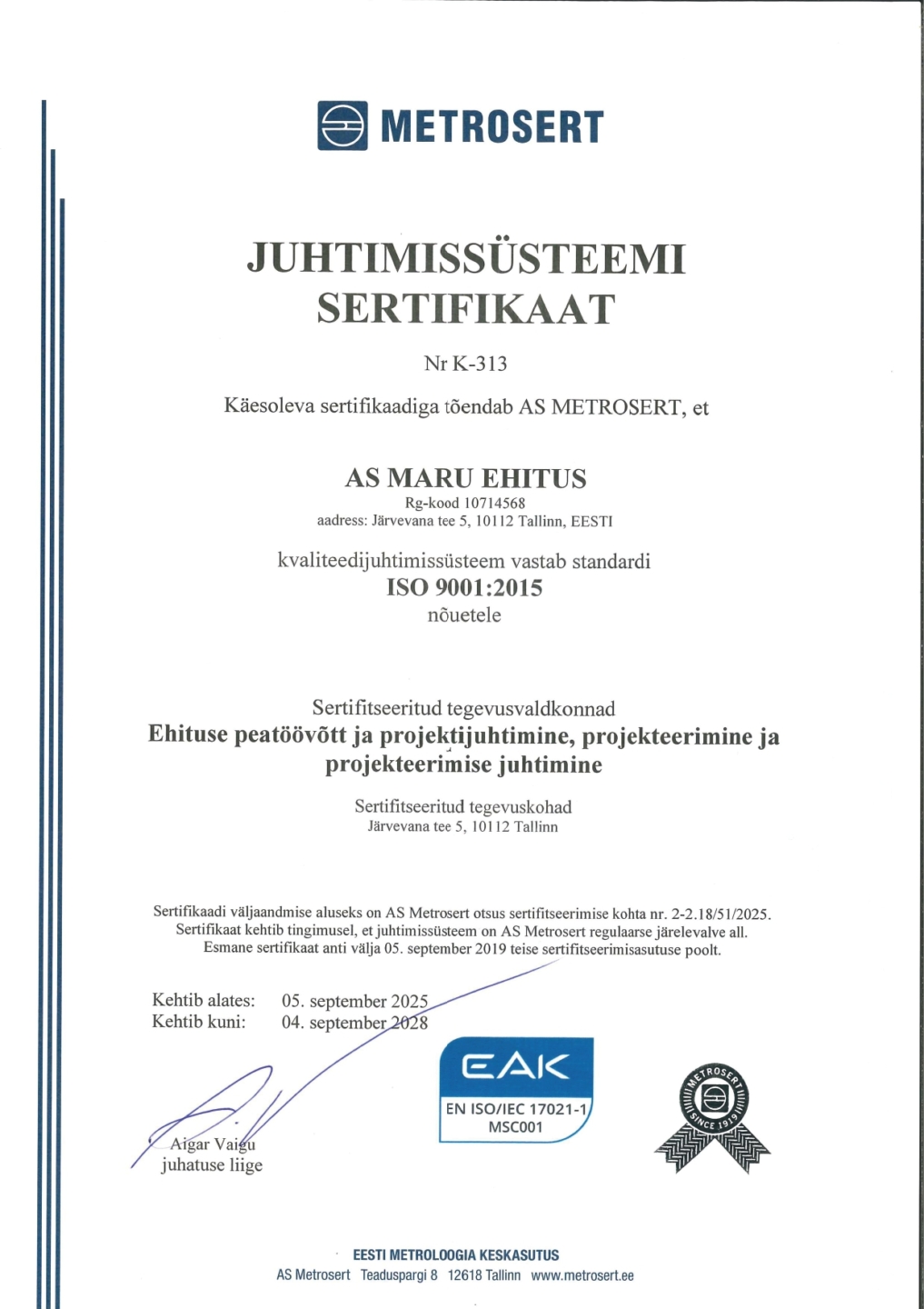- Omanikujärelevalve (üldehituslik ehitamine) EEO002355